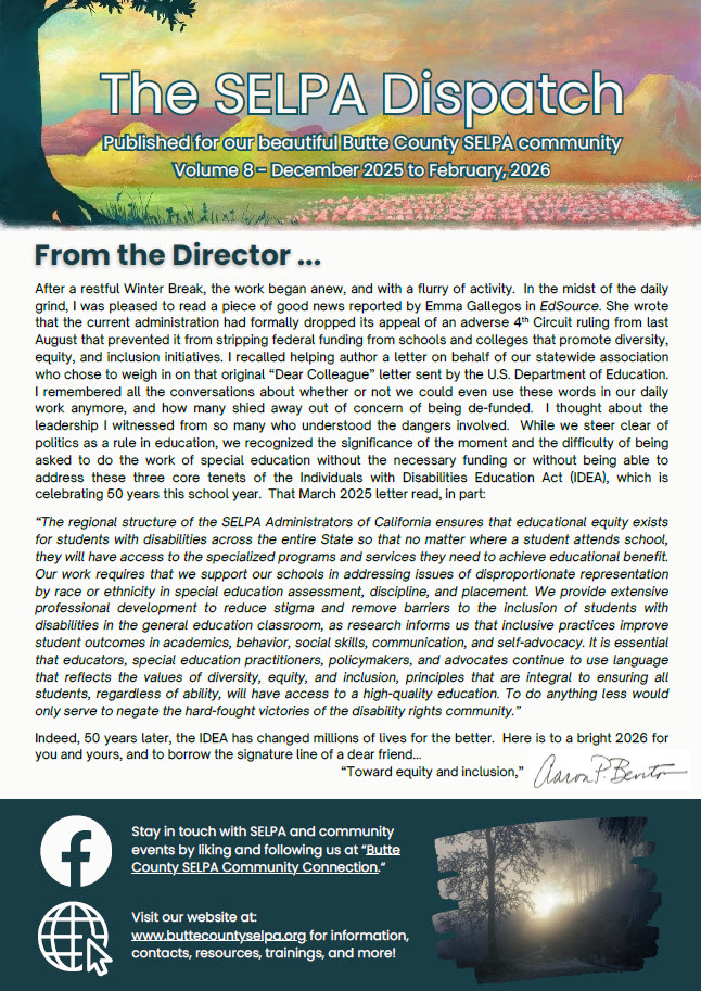 The SELPA Dispatch, Fall 2025 The SELPA Dispatch, Winter 2026