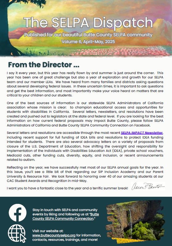 This page houses the Butte County SELPA newsletter, The SELPA Dispatch.